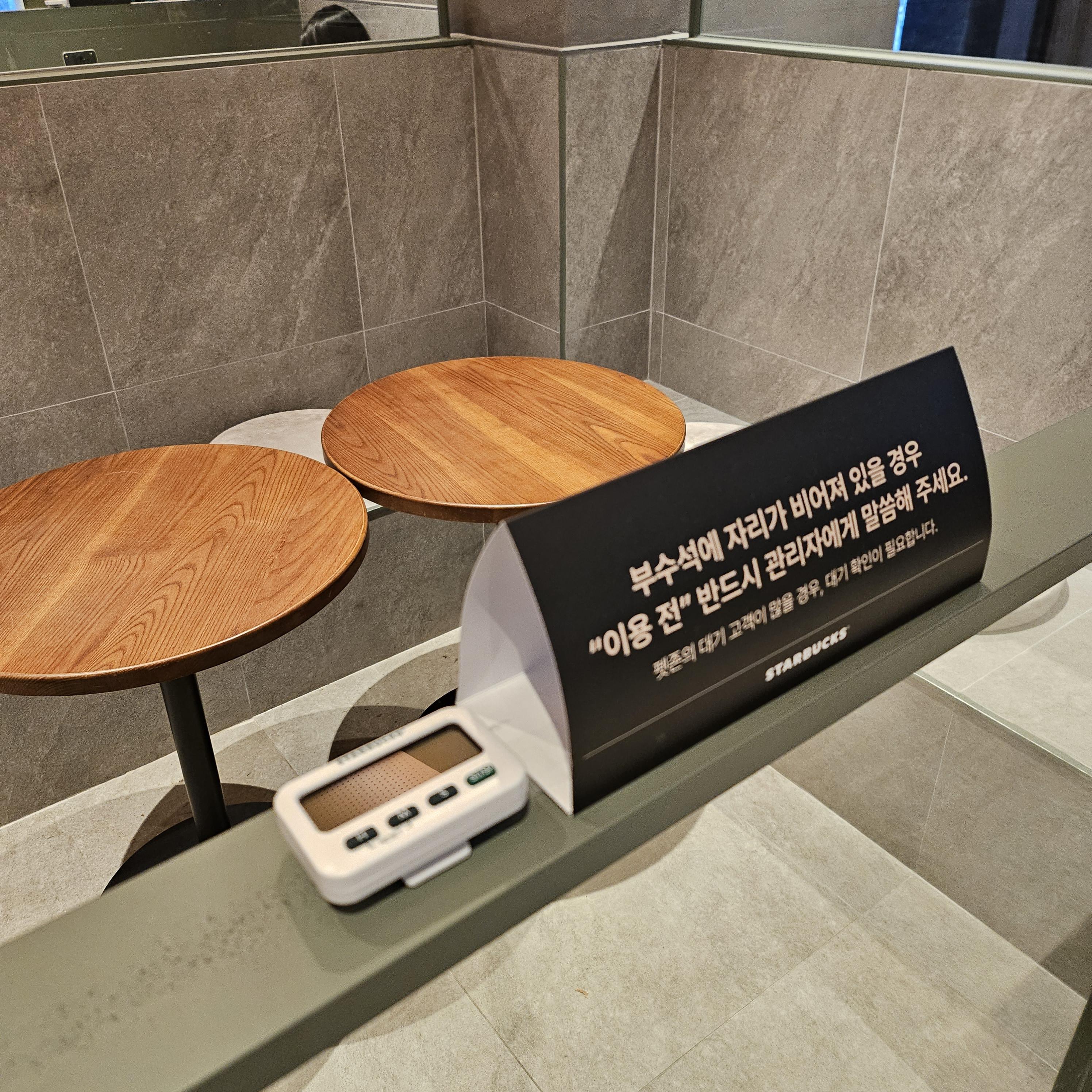 구리갈매 스타벅스에는 부스공간이 있는데, 처음 입장 시에 부스를 사용하고 싶은 사람에 한해 번호표를 나눠줍니다.